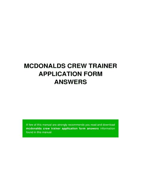 | File Name: Mcdonalds Crew Trainer Development Program Answers .pdf Size: 7398 KB Type: PDF, ePub, eBook |